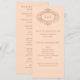 Esses programas de casamento elegantes apresentam um fundo rosa suave bege projetado com uma moldura ornamentada e vintage em dourado rosa falso. Suas iniciais e o restante do texto aparecem em uma cor rosa correspondente.