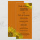 Dê aos seus convidados a linha do tempo e a ordem de sua cerimônia de verão ou casamento de outono com o Programa de Casamento Laranja bonito de Girassol Amarelo. Este elegante programa de casamento floral apresenta um girassol amarelo adornando a esquina num fundo laranja.