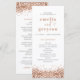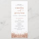 Este programa de casamento apresenta sequências de ouro de rosa e um duo de fonte de vidro. Use esta modelo para editar as fontes, a cor da fonte e a cor do plano de fundo para atender às suas necessidades de eventos. Edite o texto *maioria* para ajustado das suas necessidades de eventos.