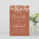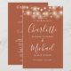 Programa de casamento com letra de assinatura de terracota com luzes de corda bonitas e tipografia moderna e elegante. Este programa de casamento elegante pode ser personalizado com as informações do seu dia de casamento especial. Projetado por Thisisnotme