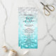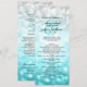 Design do Elegante "Programa de Cerimônia de Casamento" com Luzes de Lanterna de Praia (turquesa + prata) e texto personalizado.