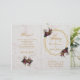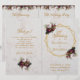 Um programa de casamento dobrado muito moderno, combinando várias tendências: geométrico, mármore, metálico (dourado) e algumas fontes especiais.