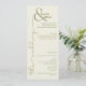 Este elegante programa de casamento moderno minimalista apresenta todos os detalhes que os seus hóspedes precisam para celebrar a sua cerimônia de casamento. Belamente desenhado com uma impressionante amperse monograma e magnífica tipografia. As formas de azeitona e de musgo verdes sobre fundo branco cremoso são eternos e orgânicas. Adicione este belo detalhe ao seu sofisticado e na moda casamento. A frente inclui a localização e data do casamento, uma mensagem de boas-vindas de obrigados para seus convidados e os detalhes da Cerimônia. A parte traseira lista as funções e os nomes da festa de casamento. Perfeito para casais que buscam um programa de casamento moderno, mas eterno, este design combina perfeitamente o estilo contemporâneo com elegância clássica. Todas as cores podem ser personalizadas na Ferramenta Design