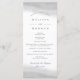 Nosso elegante programa de casamento apresenta os detalhes da sua cerimônia em um rico carvão off-black, acentuado com lavagens de aquarela cinza translúcido no topo e na parte inferior. O verso lista os membros da sua equipe de casamento com campos de texto facilmente editáveis. Coordena com a nossa coleção de convites de casamento Mist.