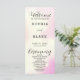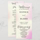 Apresentando o programa de casamento perfeito para o casal moderno e divertido! Este programa apresenta um design vibrante e lúdico, com fundo cor-de-rosa, amarelo e branco, completo com estrelas e luzes cintilantes. Os espaços brancos na design fornecem um sentimento limpo e minimalista que equilibra perfeitamente os elementos coloridos. Na frente do programa, você encontrará os nomes dos casais, a data do casamento, a cidade e o estado, e a ordem da cerimônia, tudo elegantemente apresentado em uma simples letra de bloco preto. Enquanto isso, as palavras "Bem-vindo", "Cerimônia" e "Festa de casamento" são apresentadas em uma bela fonte preta moderna, acrescentando um toque de romance à design geral. A parte de trás do programa lista a festa de casamento, para que seus convidados possam identificar facilmente todas as pessoas importantes que fazem parte do seu dia especial. Os nomes dos casais também são realçados em uma letra preta e simples, em negrito, com espaçamento de letras, garantindo que eles se destacem e deem uma impressão duradoura aos seus convidados. Quer você esteja planejando um casamento inspirado em boho ou simplesmente procurando um toque colorido e moderno, este programa de casamento é a escolha perfeita. Então, por que esperar? Peça agora e torne seu dia especial realmente inesquecível!