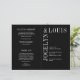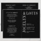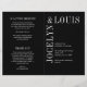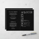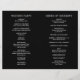 Programa moderno de casamento dobrado (impresso em papel e desdobrado) com um design preto minimalista com seus nomes em uma fonte grande ao longo do lado esquerdo e superior. Esta design é simples o suficiente para um casamento formal, mas faz uma declaração ousada.
