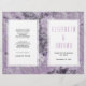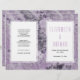 Imprima seus convidados com esta moderna cerimônia de casamento de mármore e design do programa de festas. Mostra uma imagem de mármore roxo ametista e uma moldura branca com o seu texto.