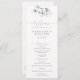 Um galho de flores brancas de magnólia enfeitiça este elegante, preto e branco, simples, clássico e moderno programa de cerimônias de casamento, que é perfeito para o ano todo, no verão, primavera, outono ou inverno. Apresenta caligrafia moderna e elegante com amplos florescimentos. Luxuoso, mas simples, clássico, mas chique, moderno, mas eterno. Uma escolha encantadora para um casal se casar em qualquer estação que gosta da estética da arte negra e branca para a papelaria do casamento, preto e branco, elementos naturais e magnólias.