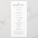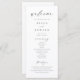 Guie seus convidados através de seu dia especial com este Programa de Casamento Moderno de Caligrafia Simples Elegante. Apresentando um design preto-e-branco minimalista com escrita limpa e caligrafia moderna, ele adiciona um toque sofisticado aos detalhes da sua cerimônia. Se você quiser ajuda para personalizar este programa para complementar perfeitamente o seu tema de casamento, me avise — eu ficaria feliz em ajudar!