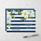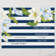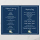 As listras azuis escuras florescem a moderna cerimônia de casamento floral e o programa dobrado de festas apresentando elegantes flores brancas e dois tons azuis com folhas verdes em um padrão listrado feito de listras marinhos azuis e brancas. Esta na moda contemporânea modelo de casamento é totalmente personalizável e é excelente para um casamento de primavera ou verão. Dobre no centro para ter um programa de casamento de estilo dobrado. Escolha apenas este tipo de valor de papel à medida que ele se dobra bem.