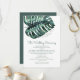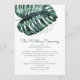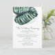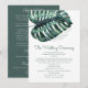 Um enorme folha de monstera tropical em um modelo de programa de casamento sofisticado, perfeito para um casamento moderno de destino, casamento na praia ou tema de ilha tropical verde.