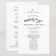 Belo design de folha de papel para programa de CASAMENTO NA MONTANHA apresentando um motivo de montanha esboçado e um grande "bem-vindo" em uma fonte elegante, bem como os detalhes do programa de casamento para você personalizar.