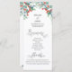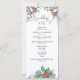 programa de casamento no inverno com caligrafia elegante e design de aquarela. Esta design apresenta frutos de inverno, sagrados, pinheiros e verde-verde. Uma bela escolha para um casamento de casamento no inverno ou natal.