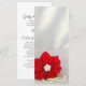 Anuncie a ordem da sua cerimônia de casamento do tema de dezembro com o festivo Programa de Casamento no inverno de Poinsettia Vermelha e Pérolas Brancas. Este elegante programa de timeline do inverno personalizado apresenta uma fotografia floral de uma flor de poinsettia de Natal vermelha com um botão de pérolas branco no centro, colar de pérolas brancas e véu de brasa com fundo de cebola branco.