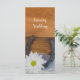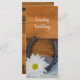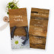 Dê aos seus convidados a ordem de suas núpcias com o encantador Programa de Casamento da Margarida Branca e da Terra de Ferradura na sua cerimônia e recepção informais, mas elegantes, de casamento rural ou estilo rancho. Este programa de cronologia do casamento do tema equino rústico, personalizado, apresenta uma fotografia floral quinta de uma flor margarida branca, ferradura empoeirada, colar pérola e véu bridal com um fundo de madeira de celeiro marrom.