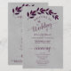 Estes programas de casamento são elegantes e saborosos, enquanto ainda são favoráveis ao orçamento. A design pintada manualmente de aquarela apresenta uma espiga de folhas magenta ou púrpura de ameixa em fundo de cinza marmoreado. A tipografia apresenta uma caligrafia antiga em script, e há espaço para detalhes sobre a cerimônia, a festa noiva e um obrigado curto para você.