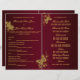 Um belo programa de casamento com borboletas de ouro FAUX cercadas por espirais florais e corações são colocados contra um fundo colorido de marrom burgundy. PERSONALIZE A TI - Personalize as modelos para se adequarem ao seu dia especial. NB - Por favor, verifique cuidadosamente a redação, a ortografia, a gramática e a pontuação antes de encomendar, uma vez que não é feita qualquer prova em seu nome e que não podemos ser responsabilizados por quaisquer erros cometidos.