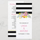 Cerimônia de casamento e programa de festas elegantes. Apresenta flores folclóricas notáveis em rosa e amarelo com folhas e listras pretas e brancas.