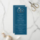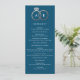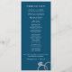 O texto limpo e moderno é facilmente personalizado neste formato chic, magro, programa de casamento. O tipo branco se sente sofisticado e feminino quando acentuado com uma folha de ouro rosa falso de anéis de casamento encravados sobre um fundo de azul marinho.