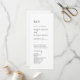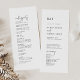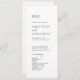 Este minimalista programa de casamento preto e branco chic é perfeito para um casamento simples. O design de boho minimalista apresenta uma tipografia rústica única e na moda boêmica em preto e branco mínimo limpo. Inclua o nome da noiva e do noivo, a data e o local do casamento, a mensagem do obrigado, a ordem do serviço, a festa noiva e um memorial "em memória amorosa" opcional.