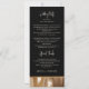 Guie seus convidados com graça usando nosso cartão do programa de casamento. A tipografia minimalista chic brilha contra uma canvas de aquarela escura enfeitiçada com sotaques de ouro falsos. A camada preta mostra graciosamente os detalhes do programa de casamento de ambos os lados.