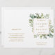 Este programa de cerimônia de núpcias apresenta cor d'água, eucalipto verde, folhas verdes e um quadro quadrado de ouro. Para personalização mais avançada deste design, clique no link "Personalizar mais". Itens correspondentes também estão disponíveis. NOTA: Você precisará dobrá-los ao meio quando eles chegarem.