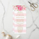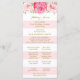 Programa personalizado de casamento em uma pasta clara, cor-de-rosa, e um padrão de listras brancas com flores rosa-d'água. Personalize esta ordem de cartões de cerimônia com o seu próprio texto.