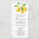 Nosso cartão do programa de casamento do tema limão é a maneira perfeita de manter seus convidados informados e comprometidos em sua cerimônia de casamento. O brilhante e alegre design de limão é perfeito para casamentos de verão, e a elegante tipografia adiciona um toque de sofisticação. O lema adiciona um toque de charme brilhante, fazer este cartão de programa uma bela e prática adição à sua decoração de casamento.