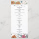 Programa de casamento moderno com uma fronteira floral colorida de margaridas, folhagem e flores selvagens em pinks, laranjas e roxo. Toda a redação deste programa de casamento pode ser personalizada.