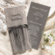 Dê aos seus hóspedes a ordem da sua cerimônia de casamento com o programa de Casamento por Ranch Country Posto, que é habitual, mas clássico. Este programa nupcial ao estilo ocidental rusticado apresenta uma fotografia de fazenda escura, preta e branca, de um posto de cerca de madeira com arame farpado, com agentes de proteção.