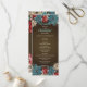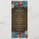 Abstrato aqua fundo azul, vermelho e creme floral. Modelo do programa de casamento em grunge ou estilo retrô. Padrão elegante com ilustração floral no estilo vintage. Tamanho 4" x 9,25", uma versão lateral. Outras combinações de cores e outras personalizações disponíveis por solicitação. © Ruxandra Proksch~Ruxique 2012. Todos os direitos reservados.