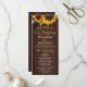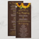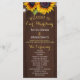 Elegante modelo do programa de cerimônias de casamento rústicas do país com dois lindos girassóis laranja amarelos e uma falsa caligrafia quítica branca moderna em uma madeira de celeiro castanho escuro como fundo.+++++++ Personalize-a com seus detalhes! Para fazer mais alterações, selecione PERSONALIZAR OUTRA opção. +++++++ adequado para o país de corrida de jardins | Verão ou outono | casamentos ao ar livre no quintal. ++++++++++ Se precisar de ajuda para mudar o design, contacte-me!