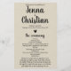 Um programa de casamento simples e rústico para seu dia especial com um fundo colorido de Kraft castanho e texto de máquina de escrever preta. Perfeito para um casamento ao ar livre.