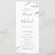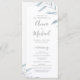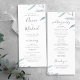 Design verde de folhagem botânica de cor aquática moderna, de cor azul empoeirada, simples e elegante com nomes de caligrafia, cartões de programa de casamento em excelente redondo para casamento moderno, casamento rústico e casamento de jardim botânico no inverno. Ver todas as peças correspondentes na coleção