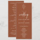 O Programa de Casamento Rústico Elegante Boho Laranja Queimada é a combinação perfeita de sofisticação e charme terroso, projetado para casais que desejam que os detalhes da cerimônia sejam apresentados com estilo e calor. Com tons ricos de laranja queimada e elementos de design sutis inspirados no boho, este programa complementa casamentos de outono, celebrações ao ar livre e locais rústicos e elegantes. Oferece uma maneira bonita de compartilhar a ordem dos eventos, nomes dos membros da festa de casamento e notas especiais com os convidados, ao mesmo tempo em que aprimora a estética geral do seu dia. Totalmente personalizável no Zazzle, permite que os casais personalizem cada detalhe, tornando-o uma adição significativa e memorável ao conjunto de papelaria de casamento.