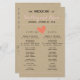 Simples programa de casamento cardíaco com sotaques cor-de-rosa e corais em um fundo Kraft impresso. Dê aos hóspedes os detalhes do dia da sua cerimônia. Perfeito para um casamento rústico no celeiro!