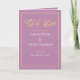 Programa de Casamento de Orçamento Simples com um design moderno, mas elegante, com a imagem "WE DO" que pode ser guardada como está ou você pode apagá-lo e escrever seu texto, cercado por uma fina borda de ouro. Todo texto está branco sobre um fundo de lavanda e pode ser alterado usando a ferramenta de edição de design. A parte de trás tem a sua obrigado. Um design chic e na moda que é excelente para um casal minimalista. Para mais personalização, clique no link "Personalizar" e use nossa ferramenta design para modificar este modelo.
