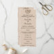 Um programa de casamento muito elegante e personalizado, em cor-de-pêssego mole, parte do jogo de papelaria "Peach Damask", que inclui um salmão rosa/pêssego e uma cor damasco branca com ornamento de ouro.