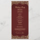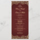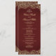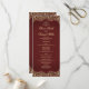 Este programa de casamento exude elegância com seu fundo de burgundy profundo e sotaques intrincados de damas de ouro. O lado frontal mostra os detalhes completos do programa de casamento em um rico painel de burgundy junto com florescimento de ouros, criando uma impressão real e eterno. No verso, os nomes do casal são lindamente realçados dentro de um quadro circular de ouro damask. A combinação de burgundy e ouro oferece um estilo luxuoso e formal, perfeito para grandes celebrações de casamento.