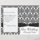Este programa de casamento tema damasco preto e branco de 8,5"x11" com fita preta IMPRESSA e fivela de joia IMPRESSA combina com os convites de casamento e outros itens mostrados abaixo. Ele foi projetado para ser dobrado pelo centro. ****POR FAVOR, OBSERVE que o papel de mais alto é um estoque de cartão e NÃO se dobrará bem (o design rará ao longo da dobra). Todo o texto é personalizável. Os itens correspondentes existentes neste design são mostrados abaixo. Envie um e-mail para niteowlstudio@gmail.com se precisar de assistência para a personalização ou se tiver perguntas ou solicitações.