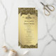 Esta design de casamento combina sofisticação com elegância eterno. O lado frontal apresenta os nomes do casal realçados dentro de um quadro de damasco do ouro ornamentado, definido contra um fundo preto profundo. No verso, o programa de casamento completo é exibido em um painel de ouro cintilante, junto com floreios amorosos correspondentes. Todas as áreas de texto são totalmente editáveis, fazer este cartão perfeito para celebrações de casamento formais, elegantes e memoráveis.