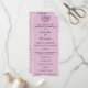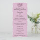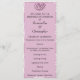 Um programa de casamento muito elegante e personalizado, em rosa suave / rosa, parte do conjunto de papelaria de casamento "Damasco Rosa Rosa" com rosa claro e cor damasco branca com ornamentos decorativos cor-de-rosa.