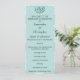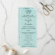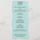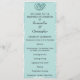 Um programa de casamento muito elegante e personalizado em aqua suave/teal, parte do jogo de papelaria de casamento "Teal Damask", com uma cor damasco branca e ligeiramente chata com ornamento teal.