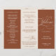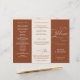Um tema de sobremesa de teracotta eterno e um cartão elegante do programa de casamento, com um roteiro de caligrafia refinado, perfeito para uma celebração formal e sofisticada de casamento. Para personalização ou outros produtos com este design, por favor, sinta-se à vontade para entrar em contato comigo.