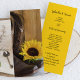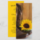 Deixem os hóspedes na sua fazenda rural casual, mas clássica, ou núpcias temáticas de rancho seguirem a ordem da sua cerimônia de casamento com o encantador Programa de Casamento Ocidental Sunflower Country. Este programa de casamento russo informal e elegante apresenta uma fotografia de botas de cowboy de couro marrom, flor de girassol amarelo e madeira de celeiro em cetim branco.