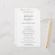 Um programa de casamento preto e branco elegante com um design simples e mínimo com um grande e grande e atrás dos nomes da noiva e do noivo em uma fonte serif tradicional. Uma escolha clássica que é perfeita para um casamento formal.