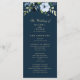 Um tema floral com marinho de aquarela e flores azuis-claras. Você pode personalizar o texto e as cores deste programa de casamento.