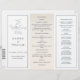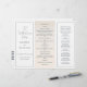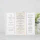 Elevem sua cerimônia de casamento com este elegante programa triplo de casamento, projetado para complementar o esquema de cores de sua celebração costeira. O verso mostra um charmoso veleiro com faixas náuticas, acrescentando um toque de charme marítimo ao seu programa.