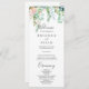 Este colorido programa de casamento floral tropical é perfeito para um casamento de destino. Os design ilustram flores brancas, amarelas, cor-de-rosa, pinceladas com lindas folhas verdes de cor aquosa, inspiradoras elegância.