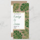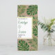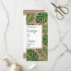 Folhas tropicais verdes e programa de casamento rústico em ouro. Este design é bonito com folhas de Split Leaf Philodendron (Monstera deliciosa) ou de Queijo Suíço em verde, com contorno dourado em papel de aparência kraft. A sua redação está num quadro branco com contorno dourado. O verso exibe um padrão de bolinhas dourado.